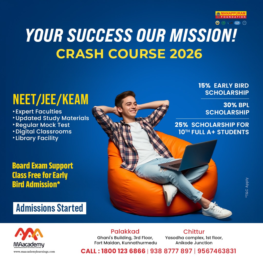 Thriprayar:9388005073, Palakkad: 9388777897, Chittur: 9567463831